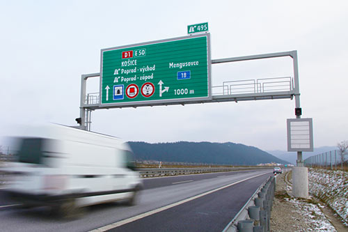 Produkt : Priečkové konštrukcie, portály s dvoma priečkami, jednoduché portály, premenné lamelové dopravné značky, premenné dopravné značky s technikou LED