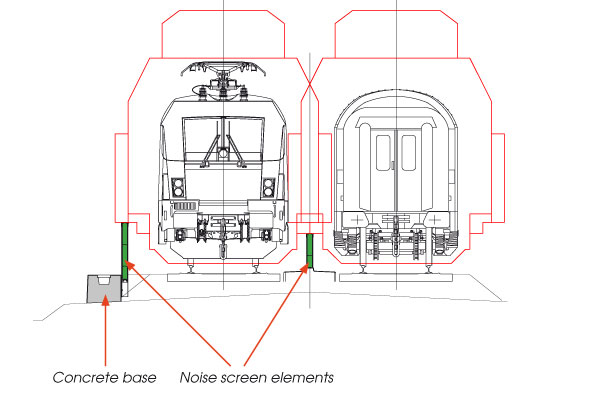 Protihluková stena Noise Breaker na trati sa skladá zo samonosného betónového bloku s integrovaným káblovým kanálom a protihlukových prvkov s vysokou schopnosťou absorbcie zvuku, ktoré sa vkladajú do adekvátne dimenzovaných oceľových stĺpikov.